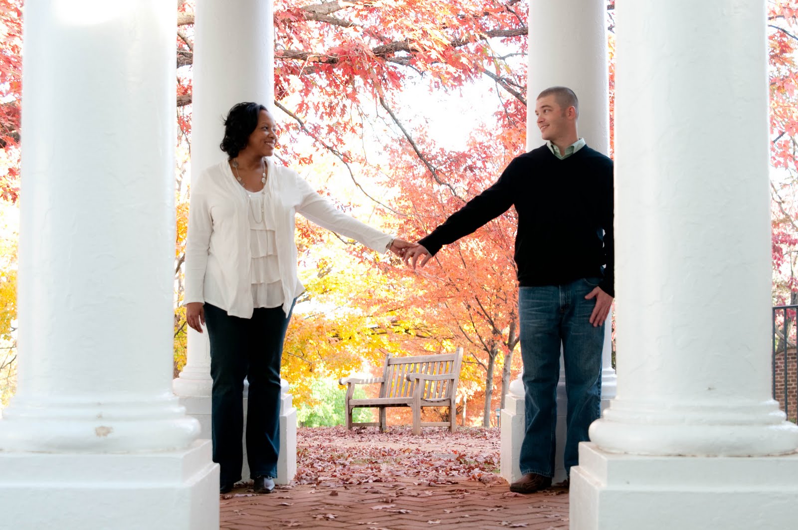 Travis and I had an amazing engagement shoot with Korey and RJ yesterday. It was just what I needed right now. I have to admit, grad school has been kind of sucking the life out of me. We shot on grounds at UVa. I've been going to school here for 3 months now, and had never really taken the time to notice how beautiful some of the campus is. So many nooks and cranys and gardens.. The vibrant fall colors totally matched Korey and RJ's awesome personalitites. Thanks for coming up to Charlottesville and thanks for a great shoot guys!
